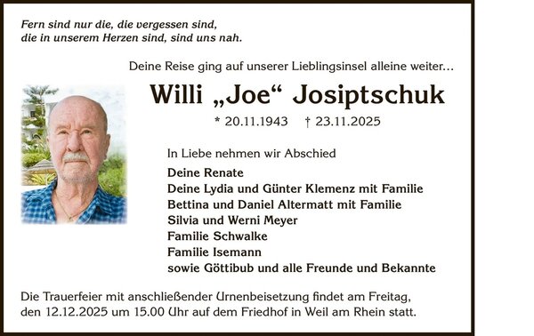 Am 23.11.2025 ist unser Gründungs-mitglied Joe Josiptschuk im Alter von